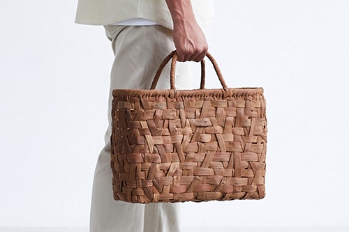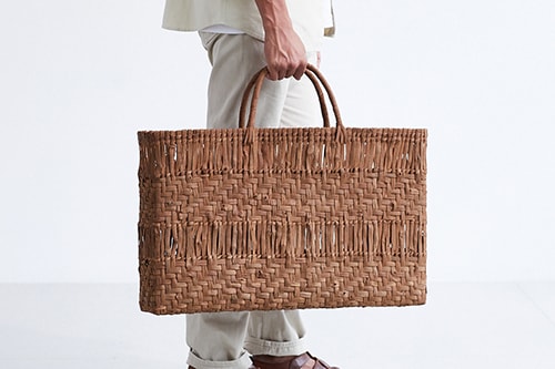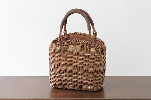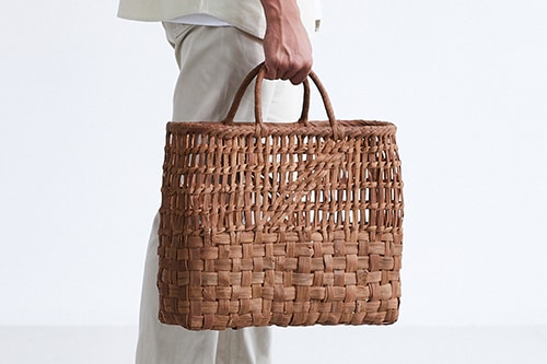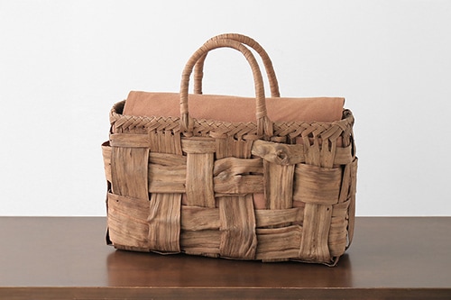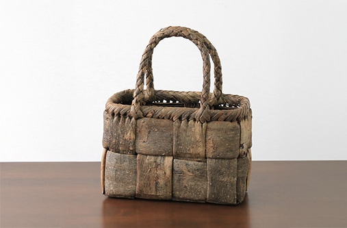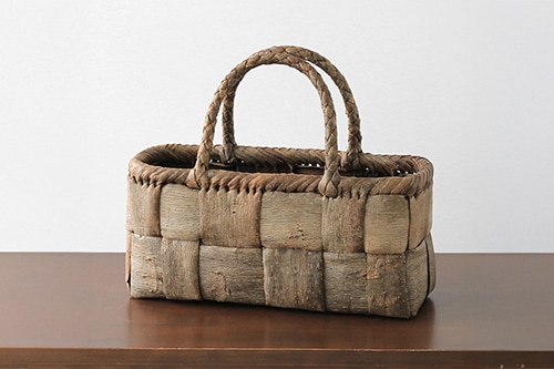 (国産材/表皮/市松編み/横長/小サイズ/六つ編み取手)